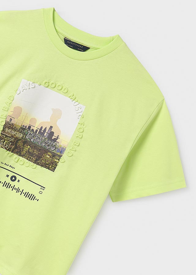 Camiseta manga corta verde Neon para chico. Cuello redondo. Diseño estampado. Letras en alto relieve.